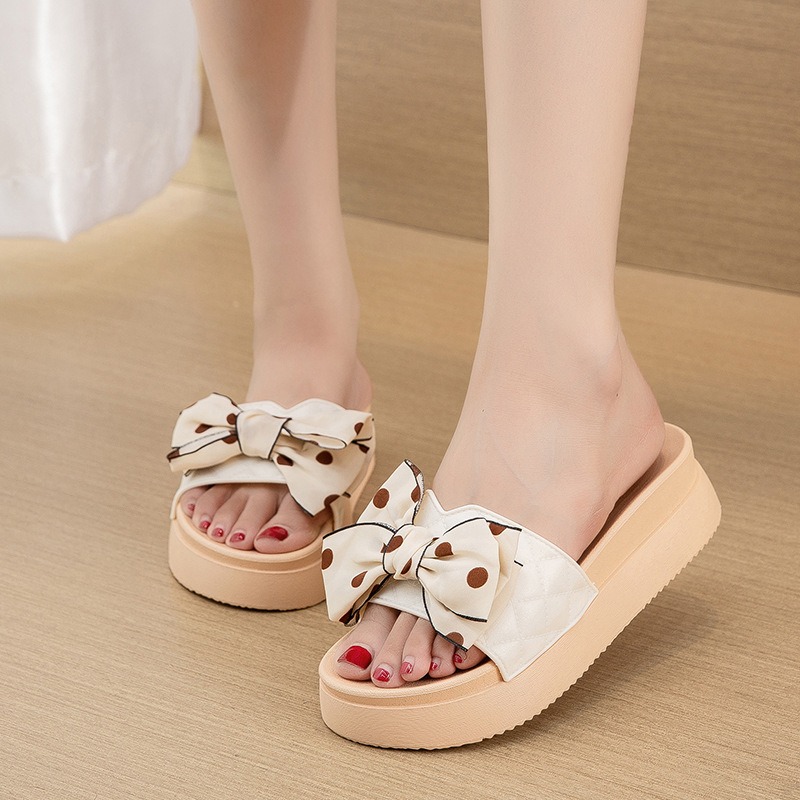 Вы здесь: Дом » Продукты » Летние тапочки » Скользит тапочка » Женская летняя обувь на танкетке и платформе в богемном стиле, летние тапочки с бантом, большой размер