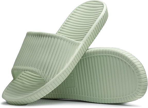 С высокой плотностью, высокой эластичной анти-кидовой подошвой, без клей. Легкий не только, более износуя. Защитите свой деревянный и ковровый пол этими взвешенными и тихими сандалиями.
